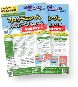 | 学べること | Minecraft(教育版・Java版)を活用したプログラミング学習 ※Scratch・Pythonなども学べます パソコンの基礎知識 |